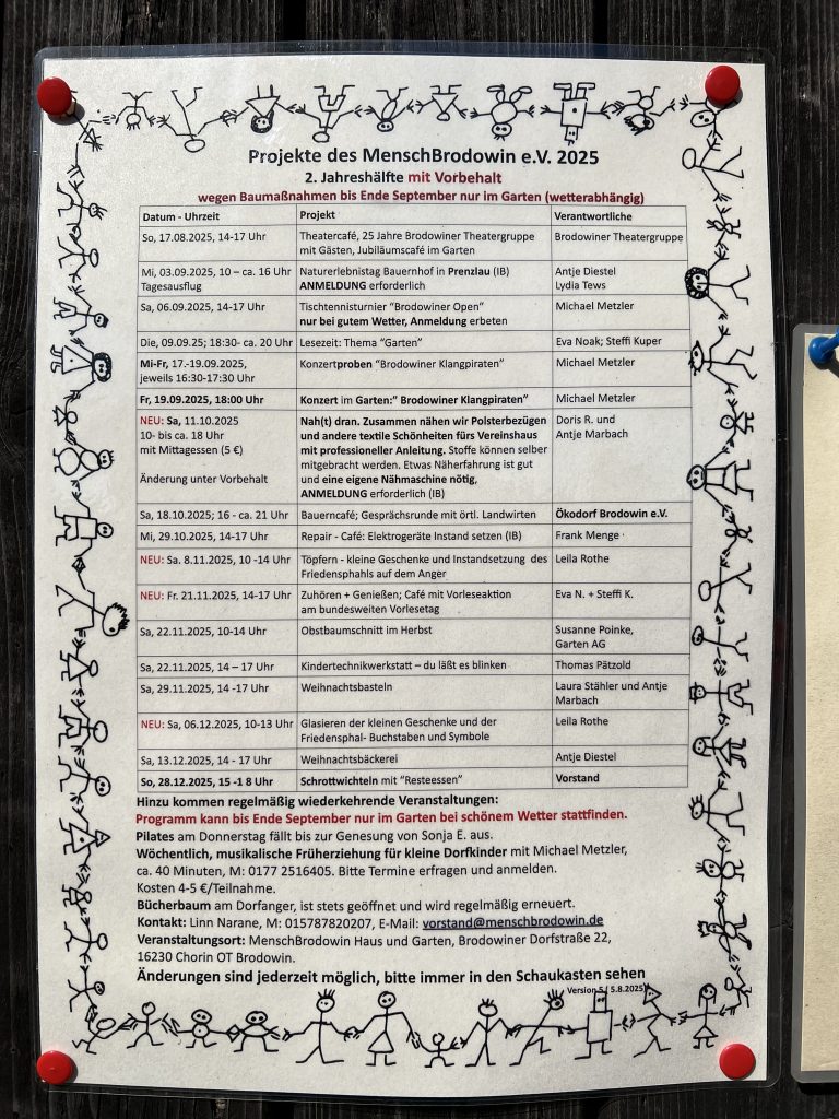 Aktuelle Veranstaltungen des MenschBrodowin Verein für die 2. Jahreshälfte 2025